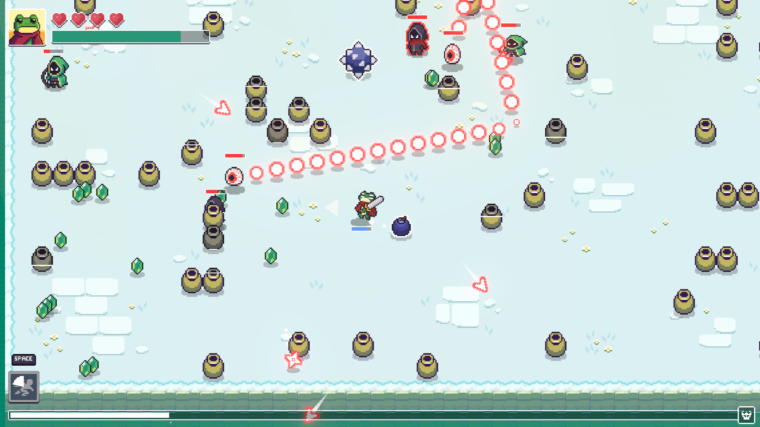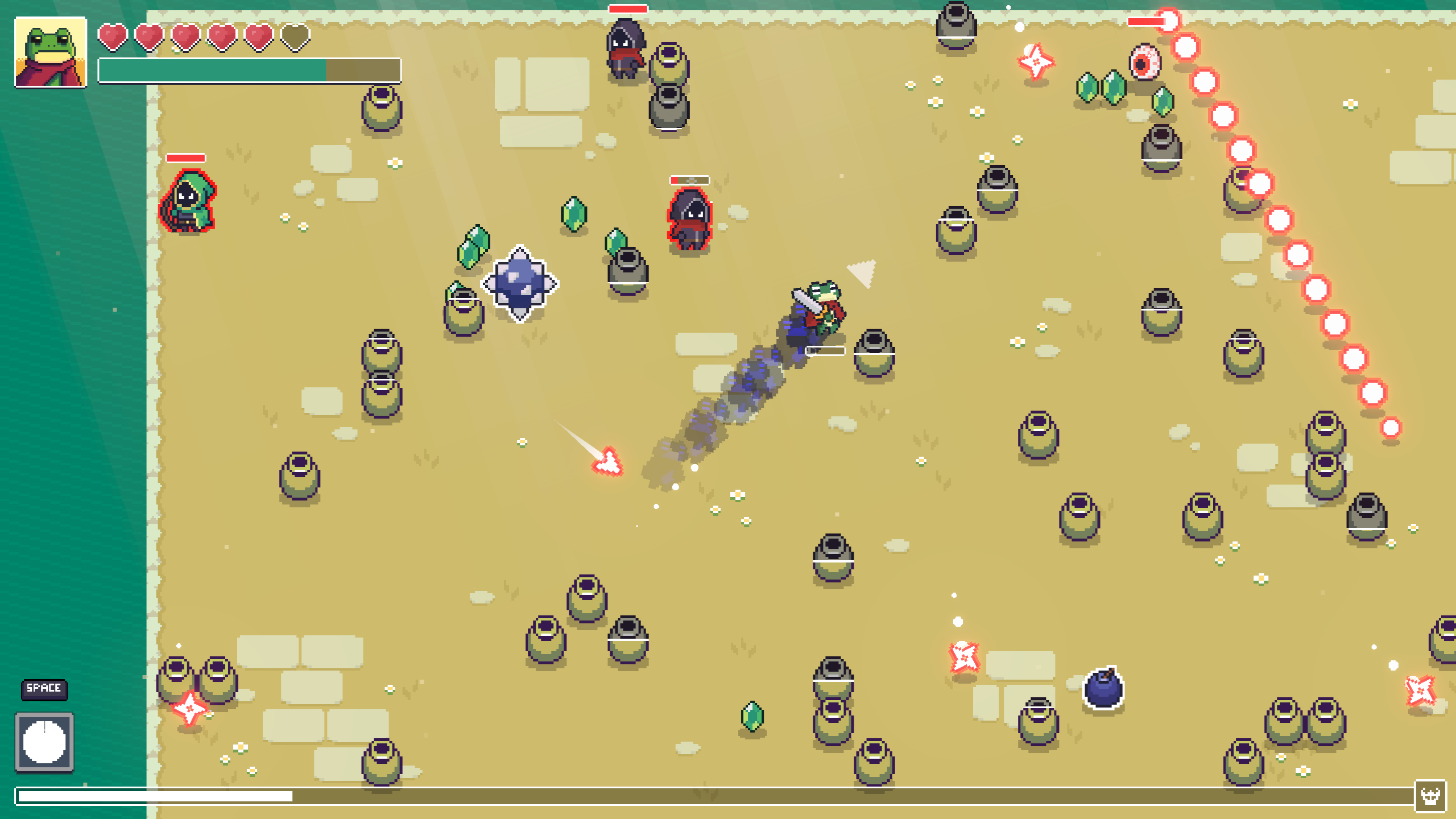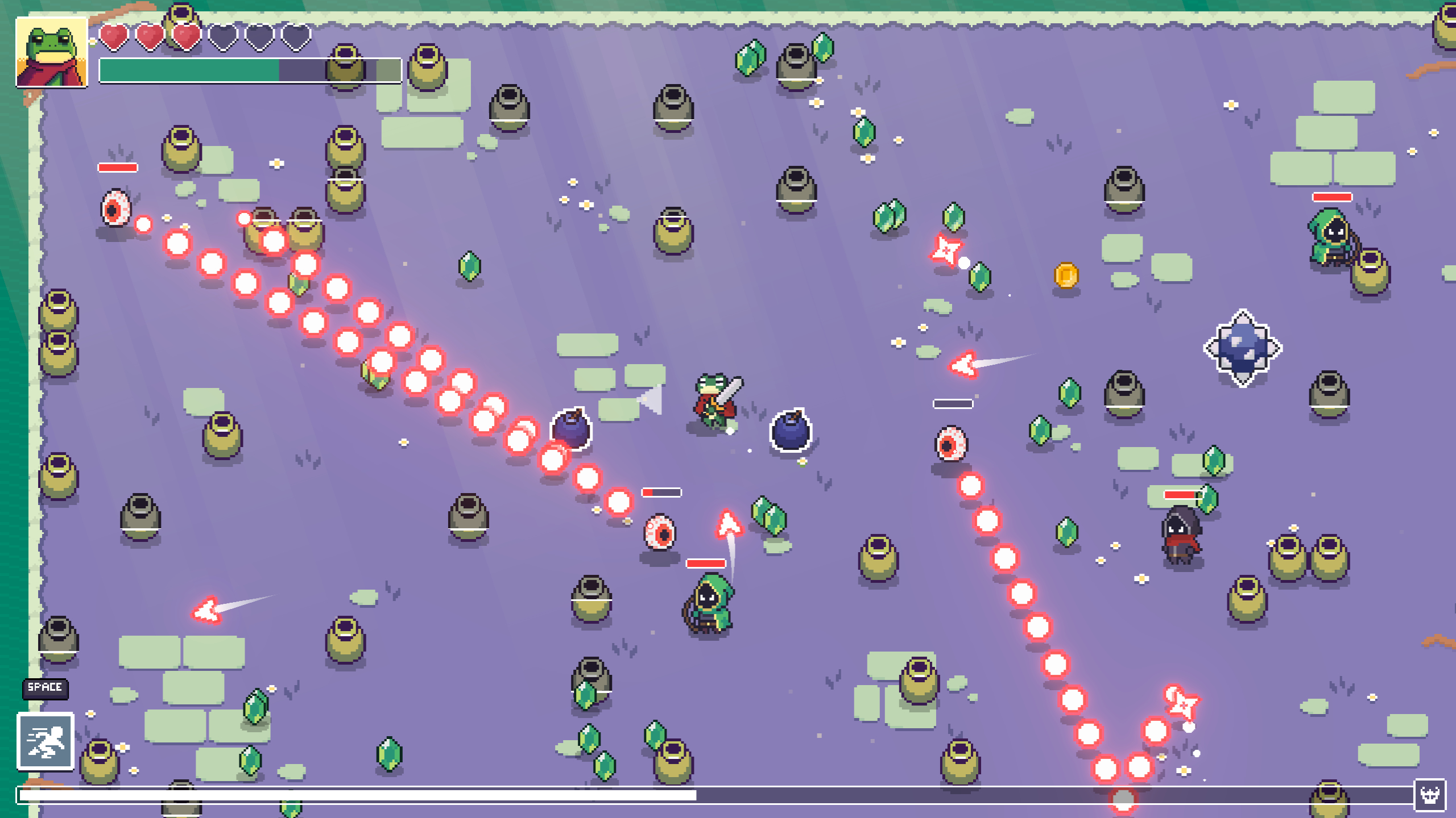 Loot Frog is an incremental action bullet hell about breaking pots, collecting gems, and fighting an evil cult.