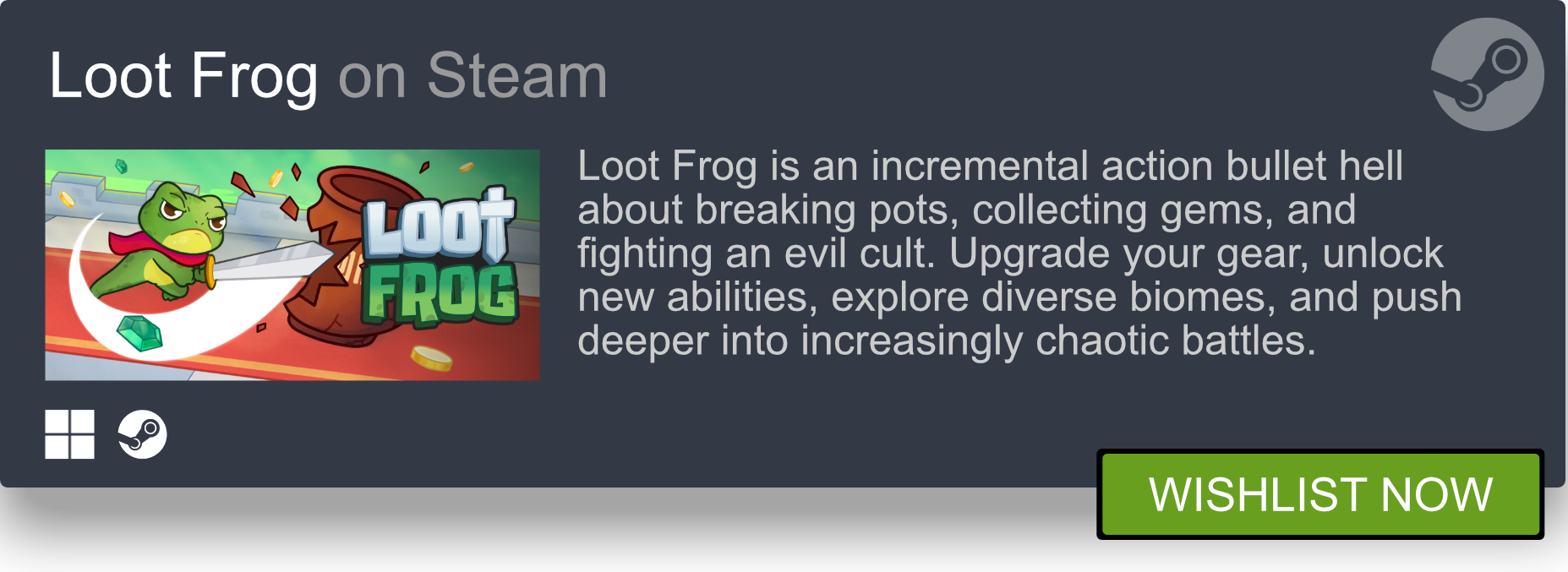 If you are enjoying Loot Frog, please consider adding it to your Wishlist on Steam. Your help means everything <3